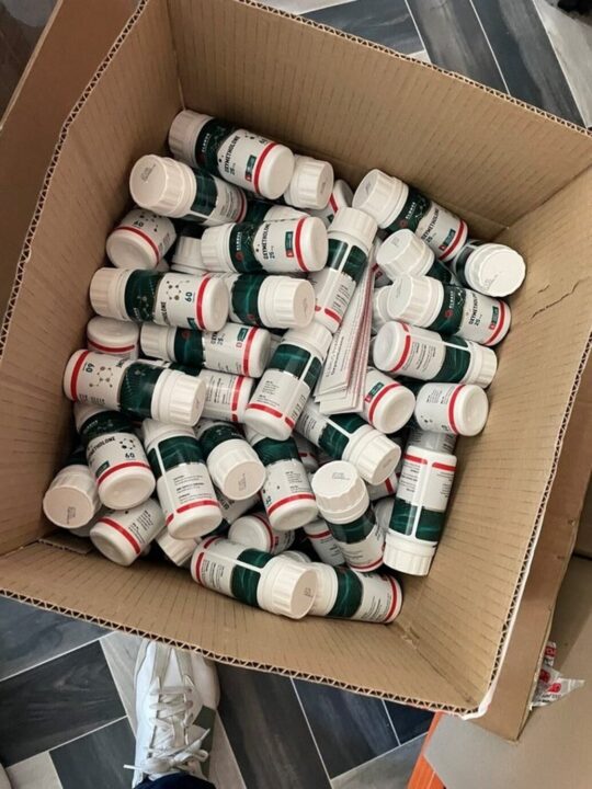 В хода на предприетите действия, започнали по предварително събрана информация, са установени помещенията, които мъж, известен на МВР с полицейска регистрация от 2022 г. за същото престъпление, е ползвал за престъпната си дейност – производство на течни препарати и таблетки и пълненето им в ампули и блистери.