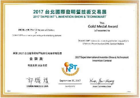 Една от българските компании участнички в тазгодишното издание на изложението за изобретения и иновации Taipei Int’l Invention Show, Ай Гифт ООД, спечели златен медал за своя продукт! Ай Гифт ООД взе участие на изложението...